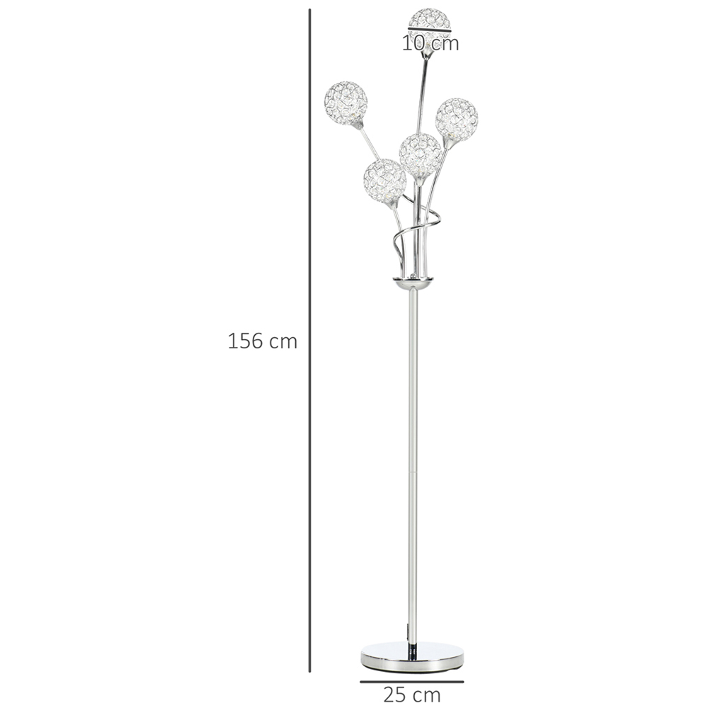 Brighten up your home and living space instantly with Portland Crystal Floor Lamps. This Portland lamp brings that added sparkle into your home - which you didn't realise you needed. The thin and sleek metal frame is fitted with five ball shades formed from an abundance of crystallite beads. As the light shines through, it'll create a glistening atmosphere. Complete with a foot pedal to turn this lamp on and off easily. Five bulbs required, not included: Living room lamp takes G9 bulbs, maximum 25W. Halogen and LED are suitable. Please click here to find our range of lightbulbs.