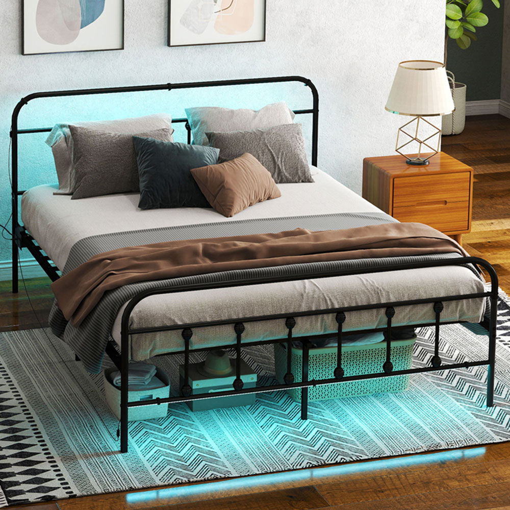 Transform your bedroom into a vibrant oasis with HOMCOM double bed frame, featuring customizable RGB LED strip lights. Tailor the ambiance via Bluetooth or APP—choose your colour, brightness and mode to suit your mood. Plus, stay connected and powered up with built-in charging stations, including AC outlets, USB and USB-C ports. This double bed base combines tech with comfort for a truly modern sleeping experience.