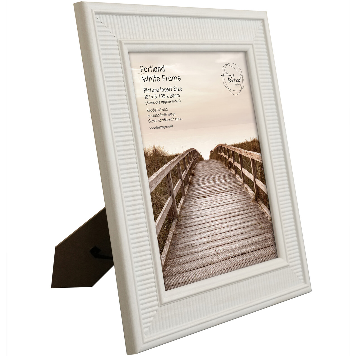 The Portland Frame is an elegant, simple frame suitable for any photo. The frame has a subtle textured finish to create modern depth and dimension in your space, highlighting your image in style without distracting from it. The classic white tone is easy to coordinate in your room, and the frame is perfect for hanging via hooks or standing on shelves and accent tables.