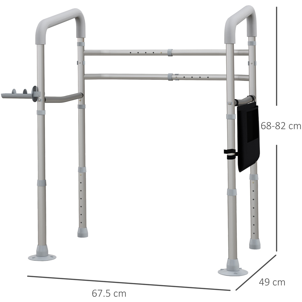 Upgrade your bathroom experience with the Portland toilet frame, specially crafted for seniors, handicapped individuals, pregnant individuals, and more. Constructed from sturdy and rust-resistant aluminium, these toilet support frames provide strong support. The EVA-wrapped handle guarantees a comfortable and anti-slip grip. Experience easy installation without the requirement for assembly tools. Fully adjustable - the adaptable toilet frame fits most round or elongated toilets (maximum width 55cm, various heights) with five width settings ranging from 48 to 58cm and seven height options from 68 to 82cm.