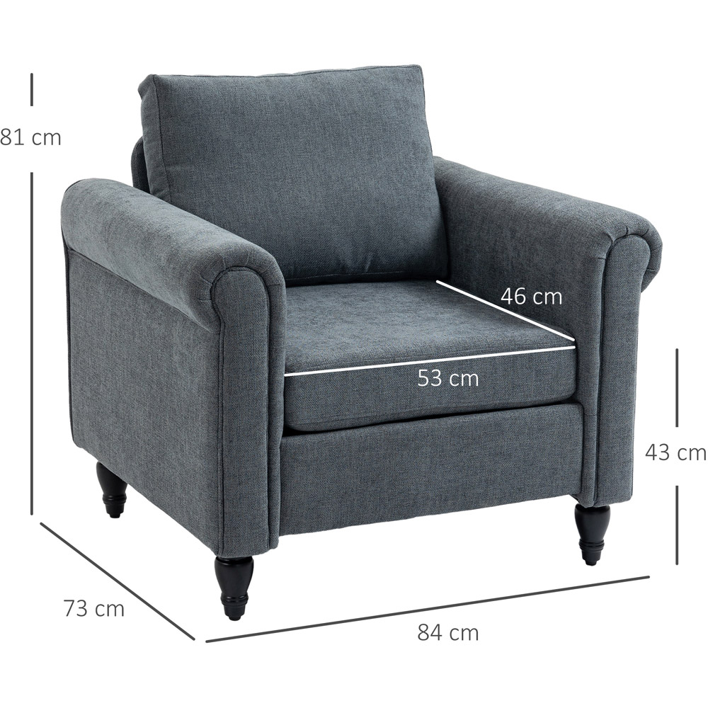 Make an elegant addition to your living space with the Portland Grey Chenille Vintage Accent Chair. This chair features a timeless design and a plush sponge filling, making it a versatile and comfortable piece of furniture. Crafted with a sturdy wooden frame and legs, it offers both durability and support, creating the perfect spot to relax and unwind. The chair showcases a sleek boxy shape with elegant scrolled arms and tapered legs. It is equipped with a soft sponge, 'S' springs, and elastic bands to retain its shape over time. The faux chenille fabric is gentle against the skin, while the robust core and back metal frame provide excellent support for reading or lounging. Additionally, the adjustable feet ensure stability on any type of flooring.