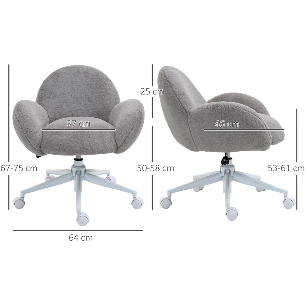 Sit back comfortably in the Portland Grey Fluffy Office Chair. This chair is not only soft to the touch, but it's cute and creates a less serious feel in your working environment. Tub shaped chair features a backrest and armrests for support, seat swivels to move with your body and height is adjustable to set to a correct working level. Also, it is filled with extra-thick padding on the seat, so the chair makes working for longer periods enjoyable.