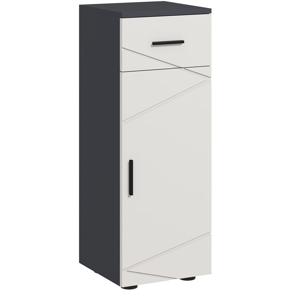 Uplift your bathroom space with a subtle dash of impact with a Portland Single Door Single Drawer Grey Slim Bathroom Cabinet. This bathroom storage cabinet, with a dark grey body and light grey doors, is given a touch of extra character with the embossed lines on the doors - say hello to something unique this season and beyond. It has a top drawer and bottom cupboard for storage and a three-level adjustable shelf inside the cupboard for flexibility. Subtle style in the minimalist way.