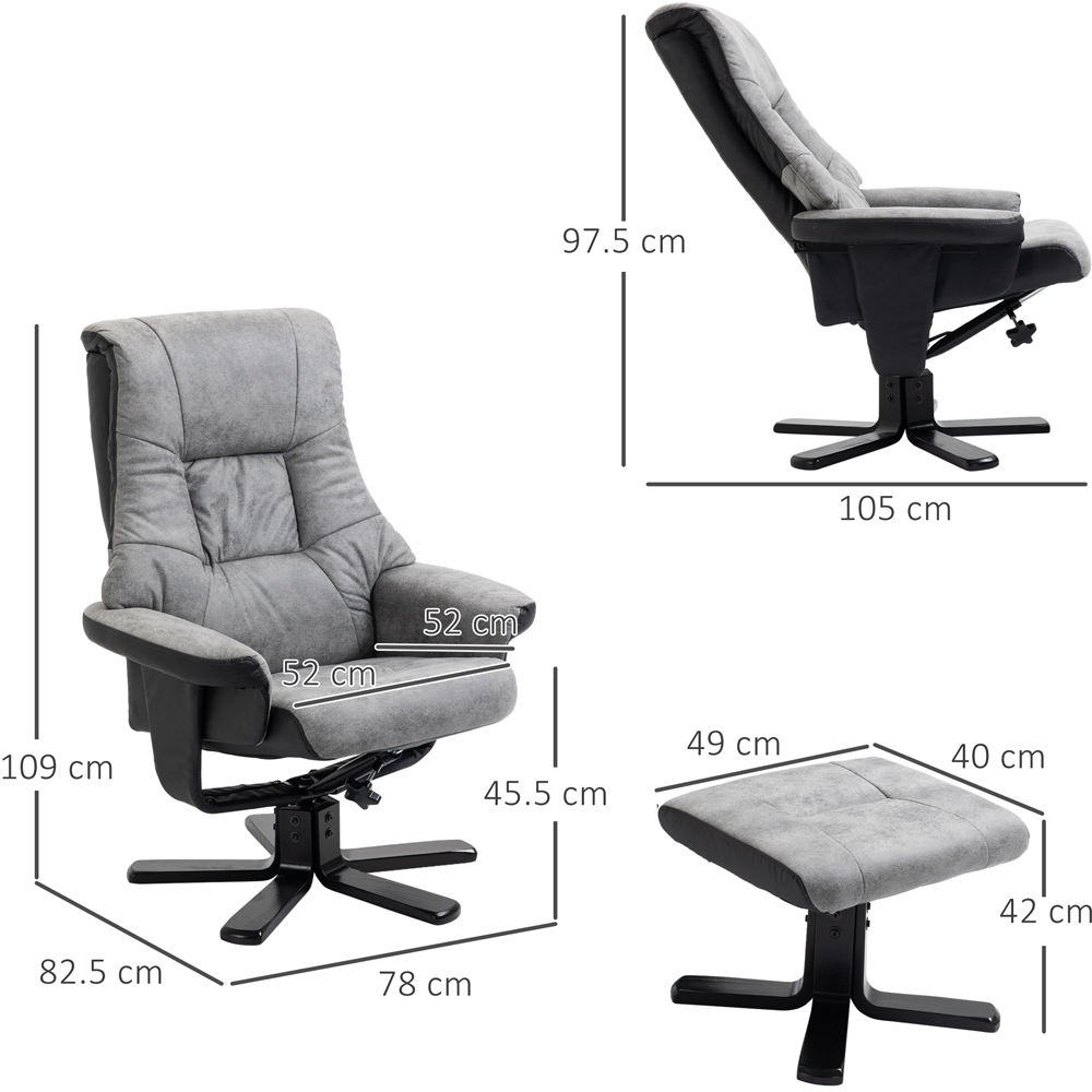 Add a comfortable and stylish piece to your living space with the Portland Grey Swivel Armchair with Footstool. This armchair and footstool duo offers double the comfort with its large size and thick foam padding. The breathable microfiber upholstery adds a touch of elegance to its vintage look. With the ability to recline back to a maximum angle of 135 degrees, this swivel chair is ideal for relaxing moments. Complete your relaxation experience by pairing it with the footstool. It's the perfect spot for your afternoon time-outs.