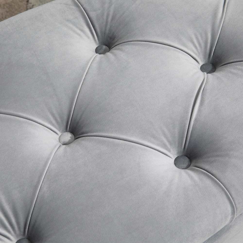 Transform your home into a stylish haven with the Portland Grey Tufted Semi Circle Ottoman Storage Bench. Featuring sumptuous velvet-touch polyester fabric and elegant turned legs, this piece exudes vintage glamour that will elevate the aesthetics of any room. The button-tufted seat provides excellent support and adds to its refined style. Additionally, the bench is equipped with a cushioned lift-up lid that reveals a practical storage area, providing a perfect solution to keep your belongings organized. With a weight capacity of up to 120kg, this bench is sturdy and reliable, and you can comfortably sit on it while putting on your shoes. The fabric is incredibly soft to the touch, providing a delightful and gentle experience for your skin. Add this exquisite bench to your home décor and enjoy its luxurious comfort and impeccable style.