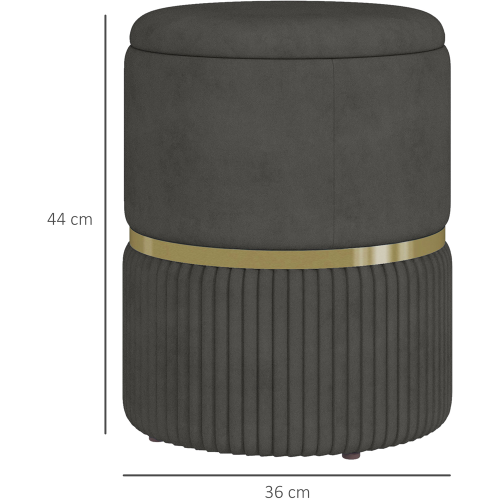 Add extra storage and an accent piece to your home with this Portland Grey Velvet Round Ottoman Footstool. The velvet-feel upholstery is elegant. Storage under the seat is handy for items like extra blankets or towels. The MDF frame is sturdy and supportive, complete with protective foot pads. It has a cushioned top so you can sit comfortably. You can use it as a round footstool in the living room, a shoe-changing stool in the entryway, or a dressing stool in the bedroom.