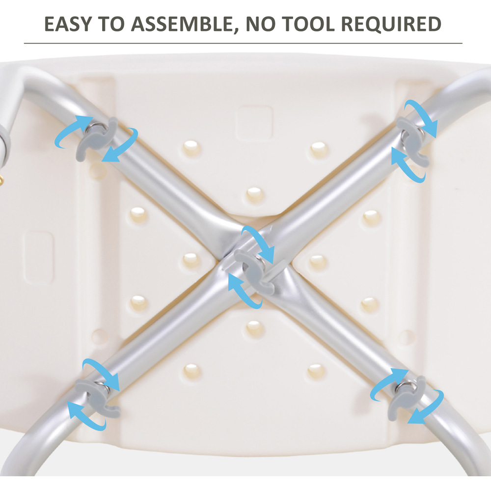 Simple, sturdy, and multifunctional, this Portland Height Adjustable Aluminium Rectangular Shower Stool is perfect for those who need extra help in the shower or struggle with limited mobility. It features a sturdy aluminium frame and a high-density polyethene seat to provide extra security and comfort. It also includes adjustable legs and non-slip rubber safety tips for additional stability, and no tools are needed to assemble the shower chair. Also, each foot of the stool is equipped with a mould-proof suction cup to help stabilize the chair, which is paired with the draining, textured seat, helps prevent unwanted sliding and falling during showers or baths. Coming together in this lightweight yet exceptionally stable and sturdy bath stool, it is comfortable and safe.