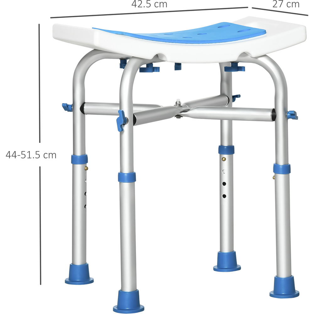 Give your elders a helping hand while they bathe with this Portland Height Adjustable Aluminium Shower Chair Blue. Made for help in the shower or bath, this stool is perfect for older people or those who need extra help in the bathroom. Made from aluminium, the four legs are resilient to water damage, keeping the chair stable and durable. Adjustable to four different heights, this comfortable chair helps you find the most comfortable sitting position. It also features hard-wearing plastic seat with a curved seat design, padding and drainage holes to provide years of use. Finished with suction pads on each foot to stop slipping, it will instantly make life easier in the bathroom.