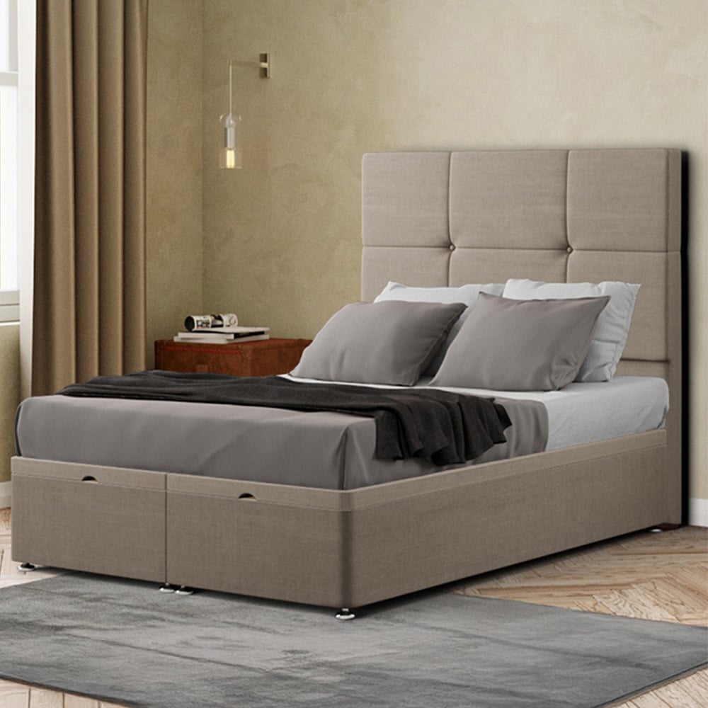 Introducing the Jacob Gas Lift Ottoman End Lift Bed - Crafted with Precision in the UK for Uncompromising Quality! Elevate your bedroom with the floor-standing headboard adorned with matching buttons, radiating sophistication and luxury. Crafted with top-tier materials, this Ottoman Bed with Floor Standing Headboards built to last, providing you with years of dependable use. Please note that the mattress is not included, allowing you to personalize your sleep experience. Elevate your bedroom with the Jacob Gas Lift Ottoman End Lift Bed and experience the perfect blend of style, functionality, and quality. Create your sanctuary of comfort—order yours today!