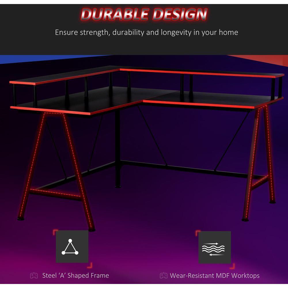 HOMCOM Black LED Gaming Desk with Power Outlets and Monitor Stand
