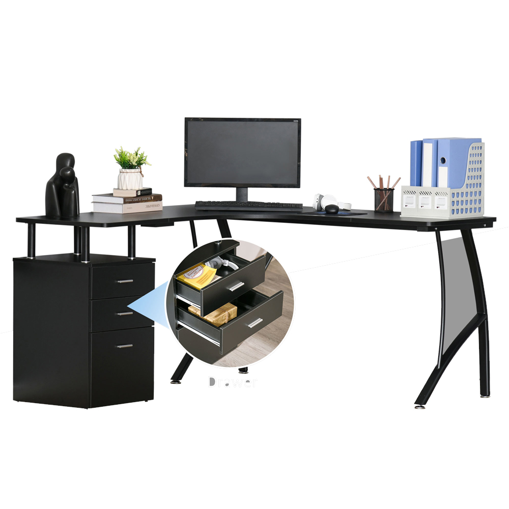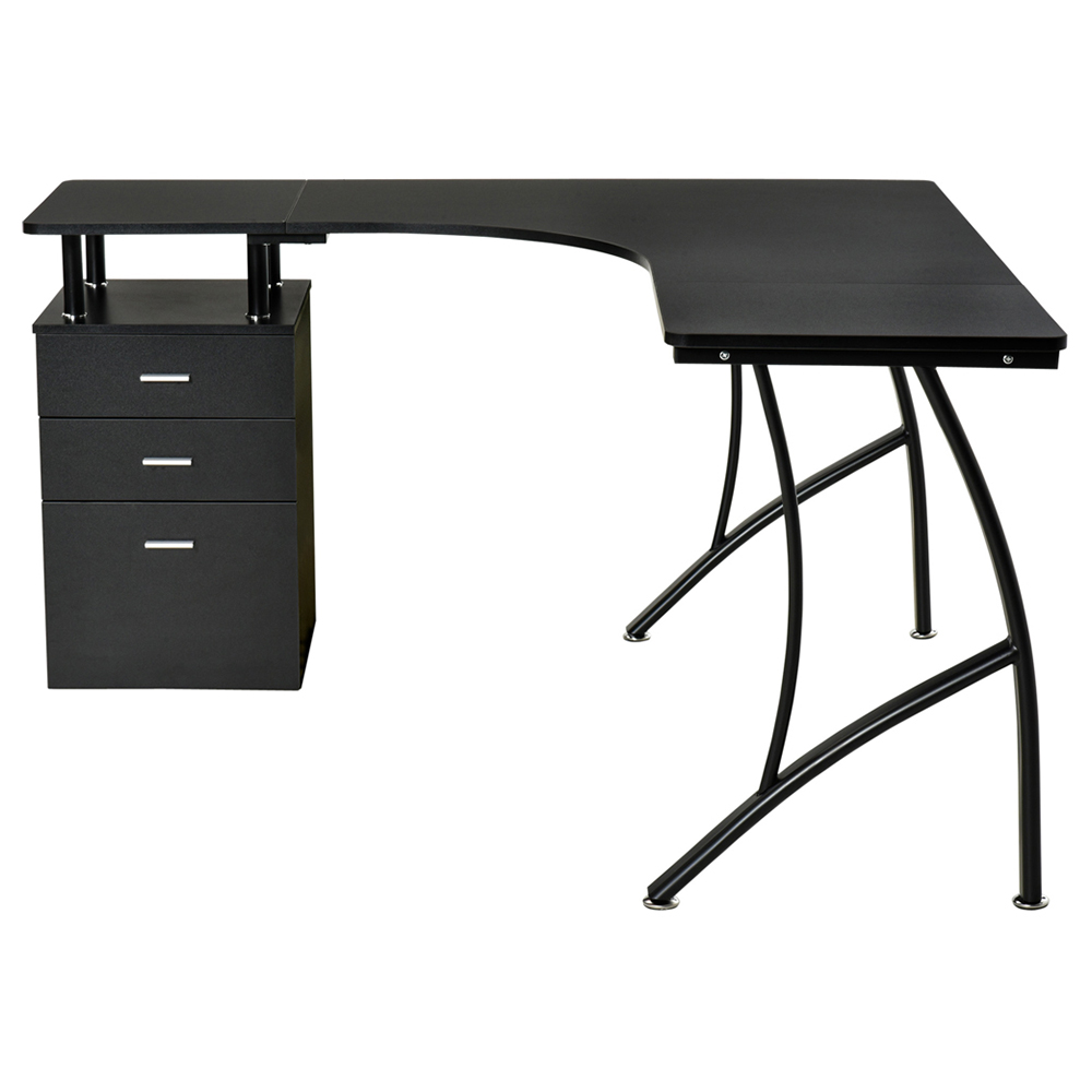 Modern and sleek, this work desk from Portland looks as good as it feels when working, supporting you properly when you need to focus hard. Its 'L' shaped design fits perfectly into corners to help utilise space more efficiently. The frame is made from steel frame for a tough structure, fitted with MDF shelves so you can work well. There's plenty of space to work and have your computer and other devices on top. It's finished with a three-drawer cabinet, so you can keep papers more safely stored.