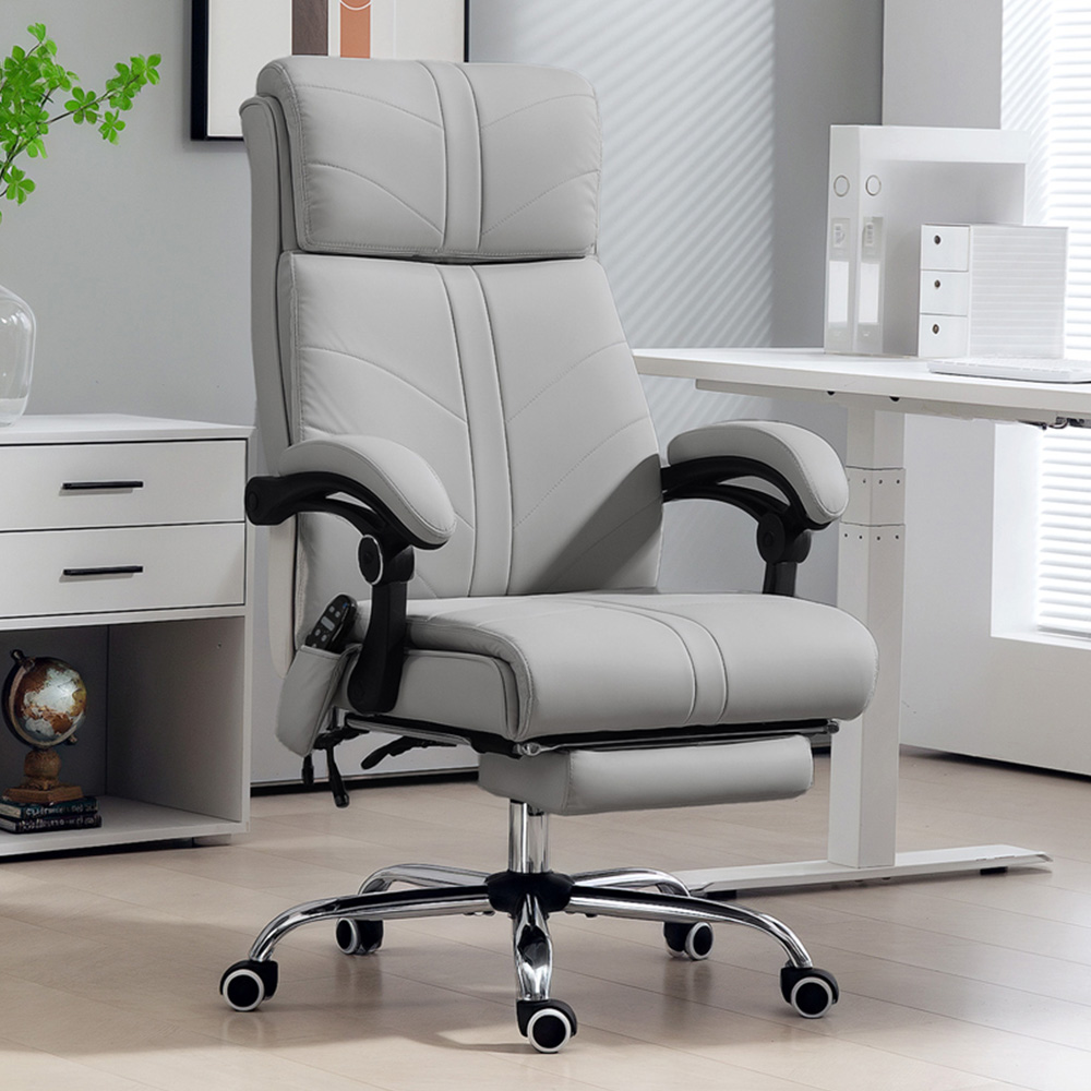 For long work days which strain the body, look to this home office chair. It features four points in the back: adjust the massage, lumbar heat and time running easily with the remote, so you can relax your body how you want. Set the height between 109cm and 117cm, so you can sit at a level you want. Filled with foam, this comfy chair is comfortable to use, with the back and padded armrests supporting you. Complete with wheels to move easily.