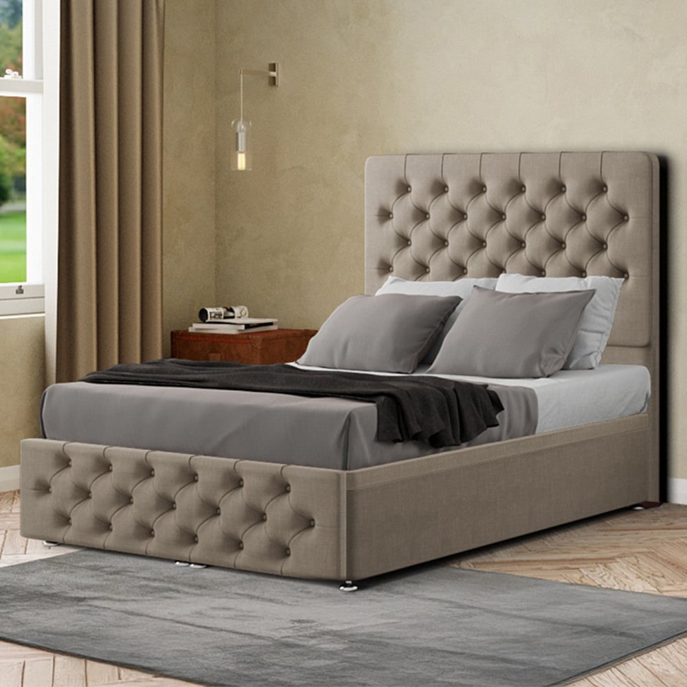 Introducing the Mary Chesterfield Gas Lift Ottoman End Lift Bed - Crafted with Precision in the UK for Uncompromising Quality! Impeccable Design: Elevate your bedroom with the floor-standing headboard adorned with matching buttons, radiating sophistication and luxury. Gas Lift Convenience: Effortlessly access the spacious storage area beneath the bed with the convenient gas lift mechanism, combining style with practicality. Premium Quality: Crafted with top-tier materials, this ottoman bed is built to last, providing you with years of dependable use. Mattress Not Included: Please note that the mattress is not included, allowing you to personalize your sleep experience.