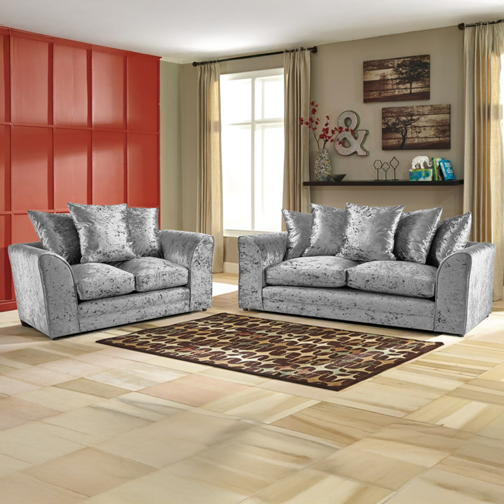 Portland Mirana Modern 5 Seater Silver Crush Velvet Sofa Set