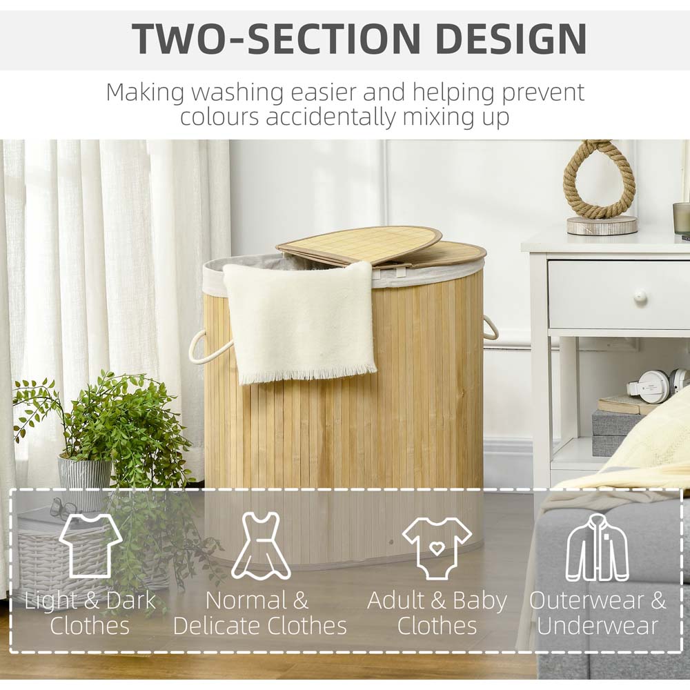 This Bamboo Laundry Hamper from Portland is an easy way to store your dirty clothes, keeping odours at bay with its bamboo structure and lid. It comes with two separate compartments - so you can organise garments whether that be between you and a partner or via colours and washes, the choice is yours. The bamboo is naturally breathable and avoids collecting damp. With 100 litre capacity, this spacious laundry basket has plenty of space for keeping all your dirty clothes. Use by yourself or with a partner: there's enough room. Separate clothing easily with the double laundry baskets - think lights/darks, delicates/heavier washes etc. This washing baskets for laundry also comes with removable lining.