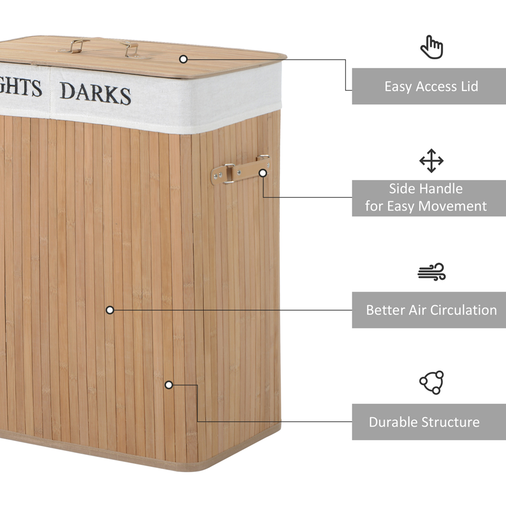 This Natural Wood Laundry Hamper from Portland is an ideal solution for any home, keep all your cloths ready for the wash. Made with natural wood with an inner cloth lining for easy organization and is removable for washing. This basket comes with 2 sections for organizing different types of cloths from Lights to darks, the basket comes with handles so it can be easily be moved around, a great item to have in your home.