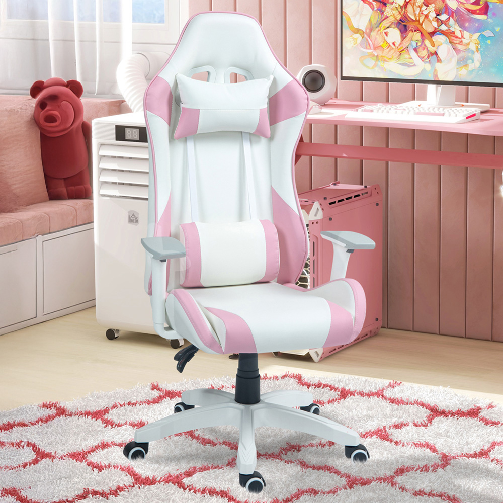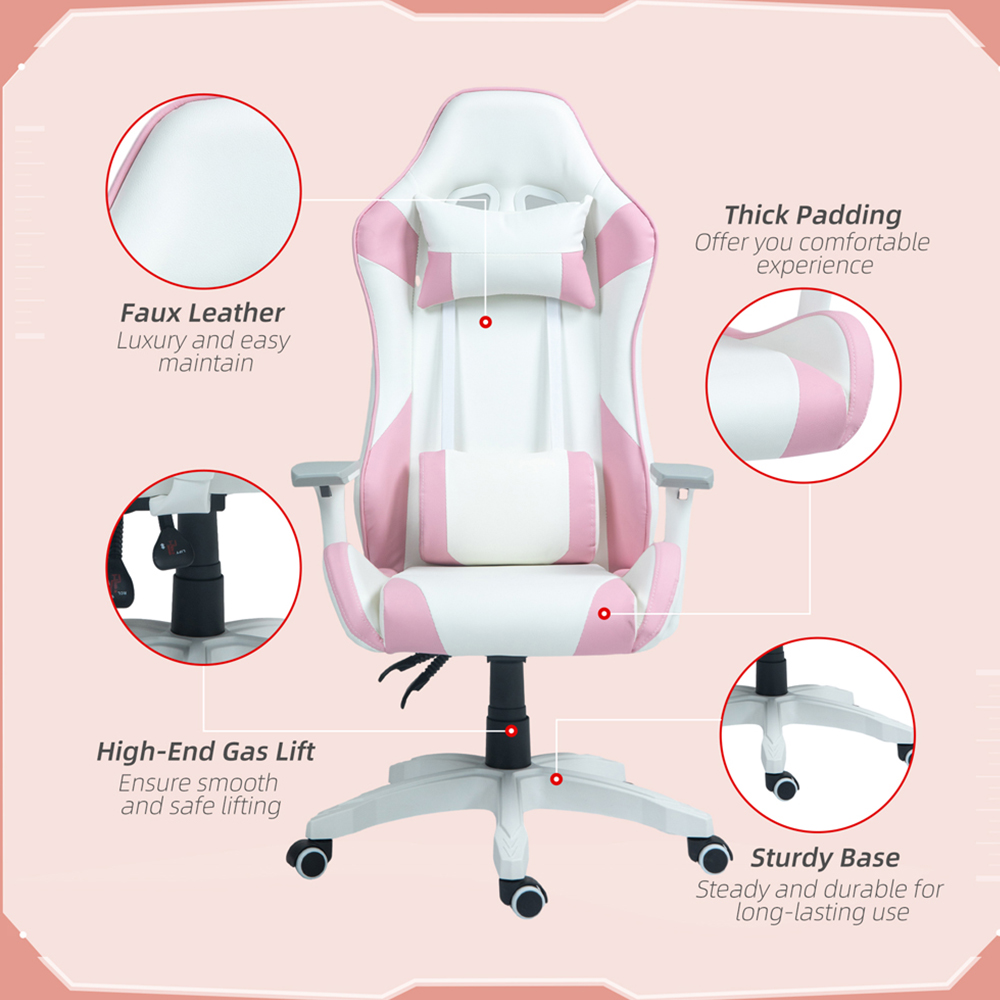 Portland White and Pink PU Leather Recliner Gaming Chair