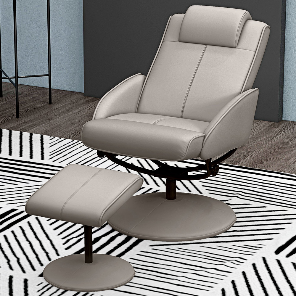Experience ultimate comfort in your home or office with the Portland PU Leather Adjustable Swivel Recliner Chair with Footstool. Crafted with a sturdy steel frame, this armchair offers reliability and strength. Its wide-fitting design includes a high slanted back for optimal posture support, as well as all-over padding for extended comfort. The chair is upholstered in PU leather, ensuring both comfort and skin-friendliness. With a maximum reclining angle of 145 degree, the chair back provides the perfect spot to relax, especially when paired with the accompanying ottoman.