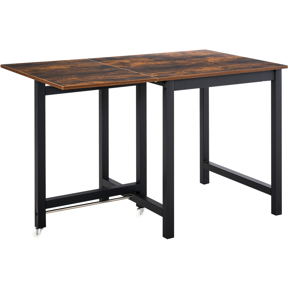 Dine in style with the Portland Rustic Brown Drop Leaf Folding Dining Table. Cool and stylish, this table has a minimal look which isn't too imposing but can create an impact if required. Featuring a drop-leaf design, it's easy to extend and fold away effortlessly. Also, with wheels, the table is quite simple to move around. Solid and durable, the thick metal frame provides a sturdy and balanced structure. Plus, with the beautiful wood grain effect, this dining table is smooth and easy to clean. Great for expanding dining space with the kitchen table when friends come over. Size: 76.5 x 118 x 70cm.