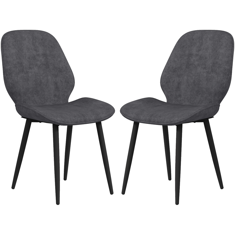 Introduce a touch of relaxed style into your space with the Portland Grey Dining Chair Set of 2. With a modern armless design and slanted back, these chairs offer elegant seating. The foam padding ensures comfort, while the velvet-feel upholstery adds a soft and stylish touch. The chairs are supported by powder-coated steel legs with anti-slip feet for stability.