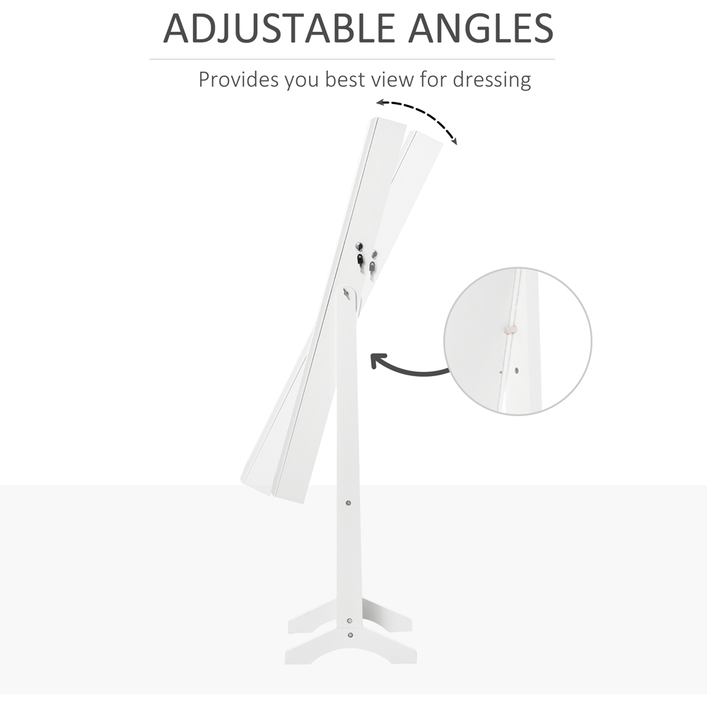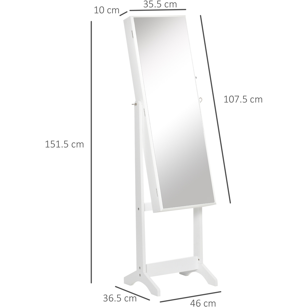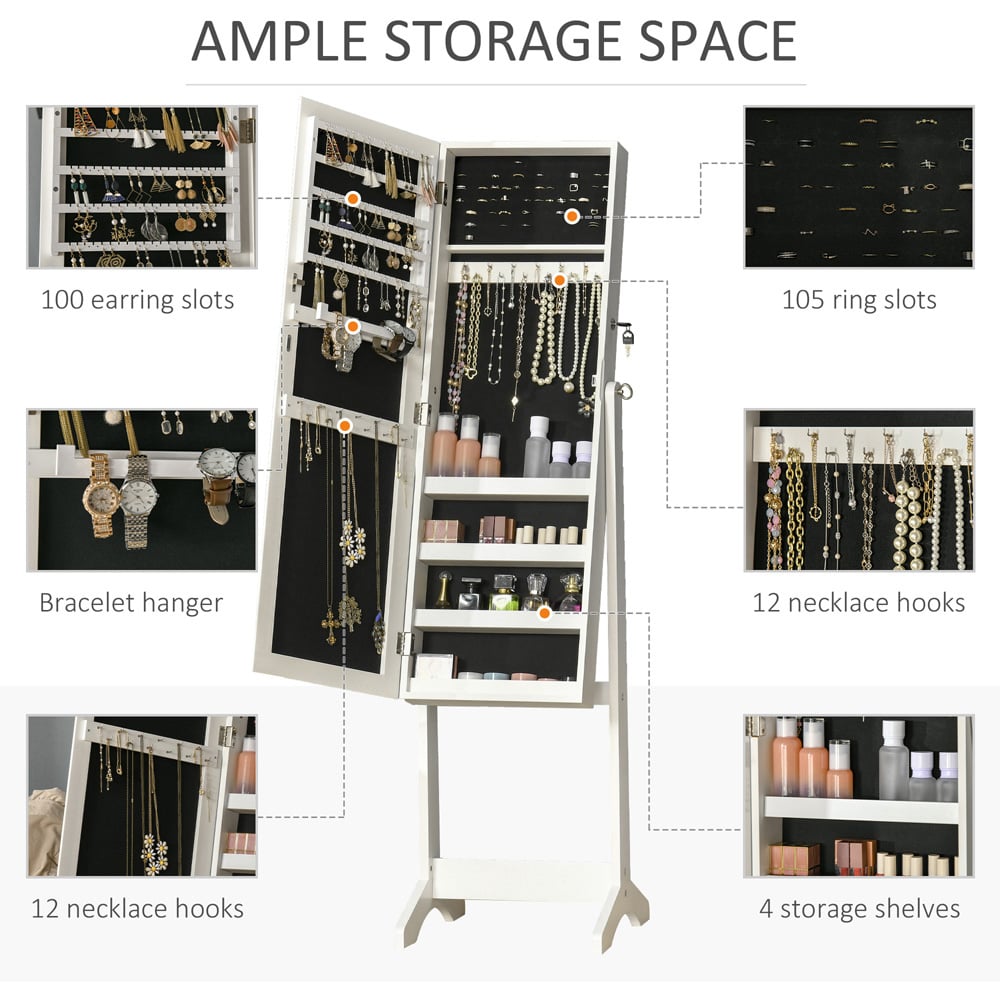 Infuse elegance and easy organisation into your everyday routine with the Portland Single Door White Mirrored Jewellery Cabinet. Featuring a full-length mirror on the outside, this armoire is set to three different angles, making it easy to get ready in a position that's best for you. With 100 earring slots, a bracelet hanger, 24 necklace hooks, 105 ring slots, and four shelves, you'll have plenty of storage room to keep everything together at once. Plus, the two-foot base ensures balance and stability. And with its longline size, you'll be able to see plenty of your outfit. Don't miss out on this perfect storage solution.