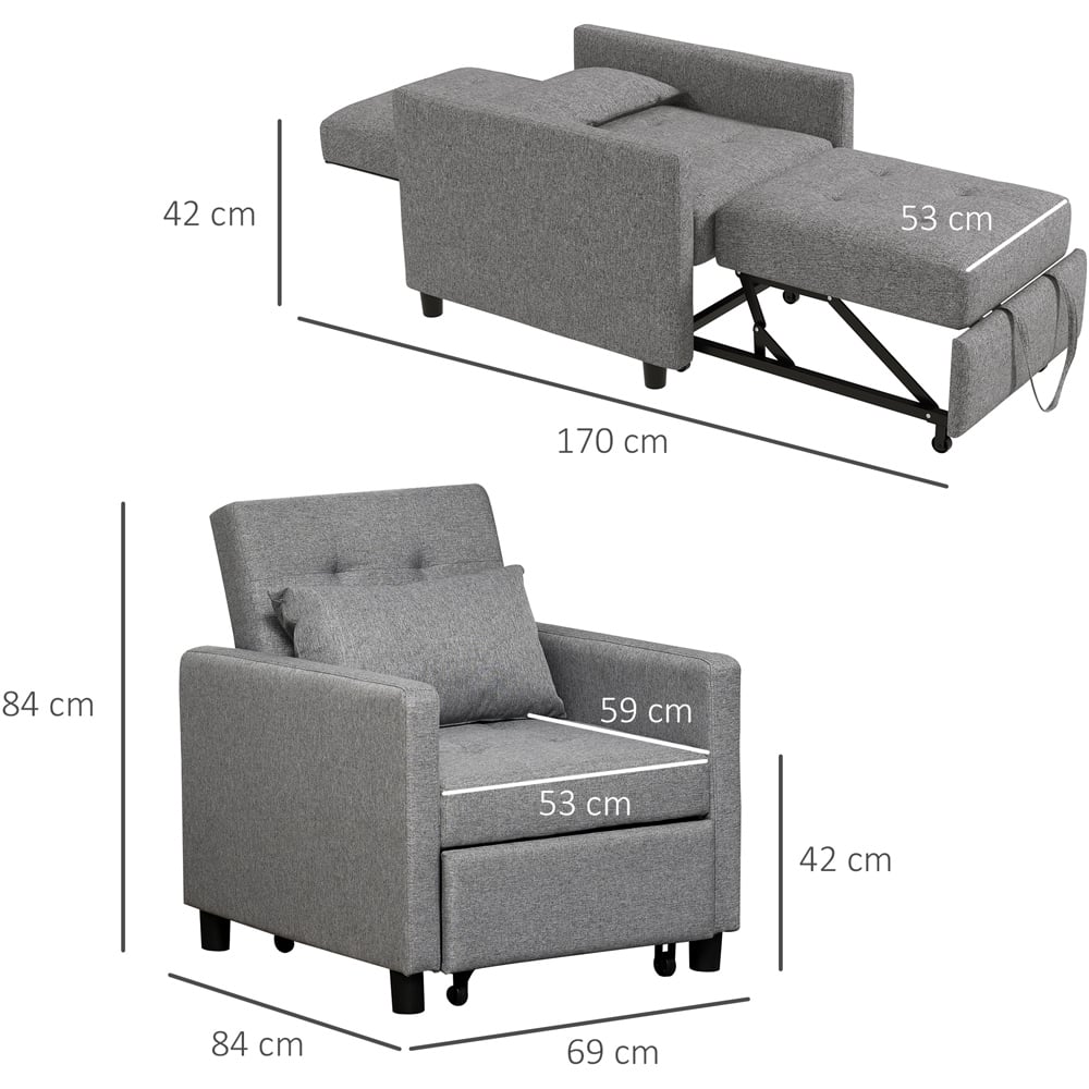 Make a stylish and comfortable addition to your space with this Portland Single Sleeper Grey Fabric Chair Bed. Whether used as a chair or temporary bed, this convertible chair bed will keep you comfortable all the time. Push the back to a 105°, 155° or 180° angle, and use it as an armchair to relax after a long day. It also comes with a footrest lifting your lower body for extra relaxation. Easy to use, the pull handle makes it easy to transform into the bed to save you time and effort. For added comfort, it is padded all over for comfort night and day. Moreover, it is finished with a breathable linen-feel upholstery for added style. This sofa chair comes with a pillow. Easy to maintain, the covers are removable and washable.