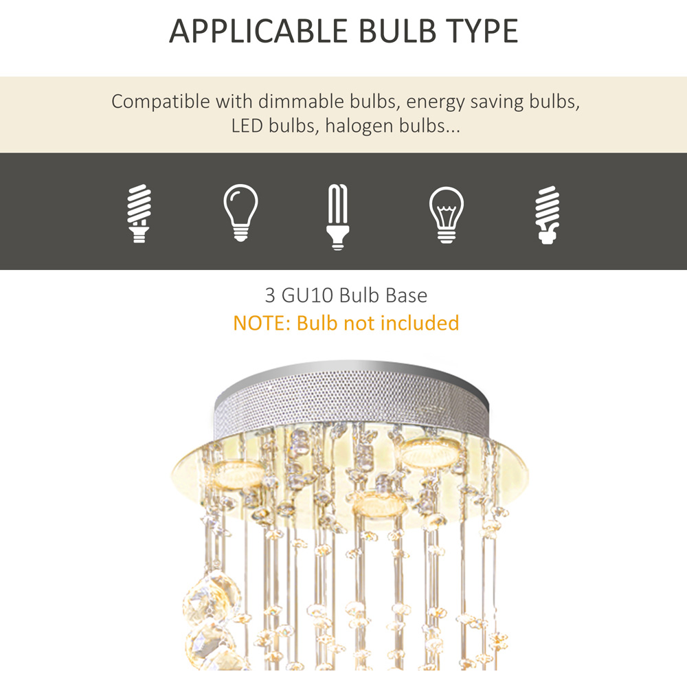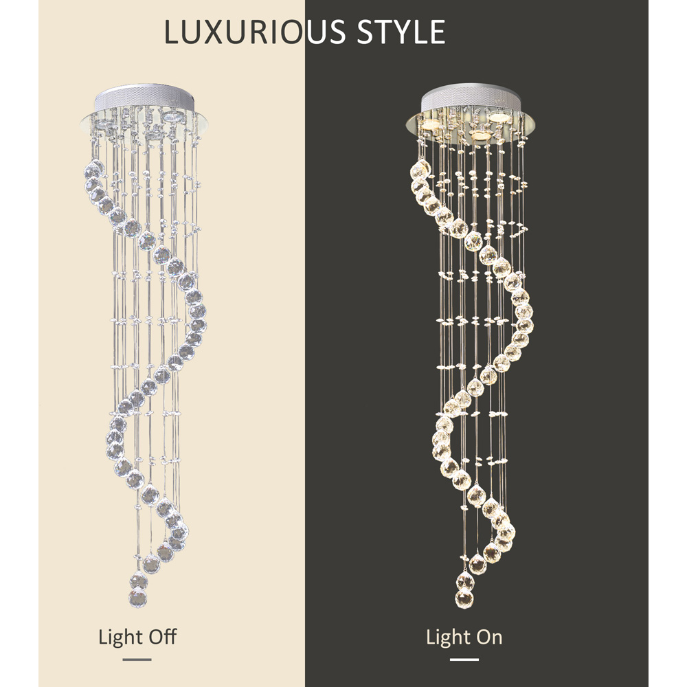 Bring elegance to your place with this beautiful Portland Spiral Crystal Chandelier. It is a unique and charming decor and an artistic and romantic crystal ceiling lamp. The modern flush mount light with crystal chains of balls brings a shining and sparkling effect, a wonderful night. GU10 bulb will make every scene look like a painting. Besides, its attractive and luxurious appearance will fit any decor in your home for lounge, dining room, bedroom or hallway. Please click here to find our range of lightbulbs.