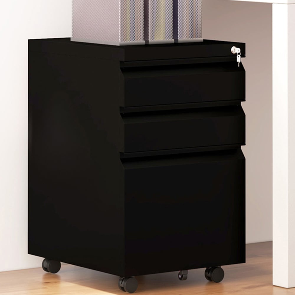 Organise your files and documents easily with this Portland Vinsetto 3 Drawer Black Mobile Filing Cabinet on Wheels. Made from steel, it's strong and durable and features two small drawers and a large bottom drawer to help you store your files and keep them organised. This cabinet comes with a top lock to lock the drawers and keep your documents safe and secure, so you do not have to worry about unwanted people accessing your belongings when you are not around.