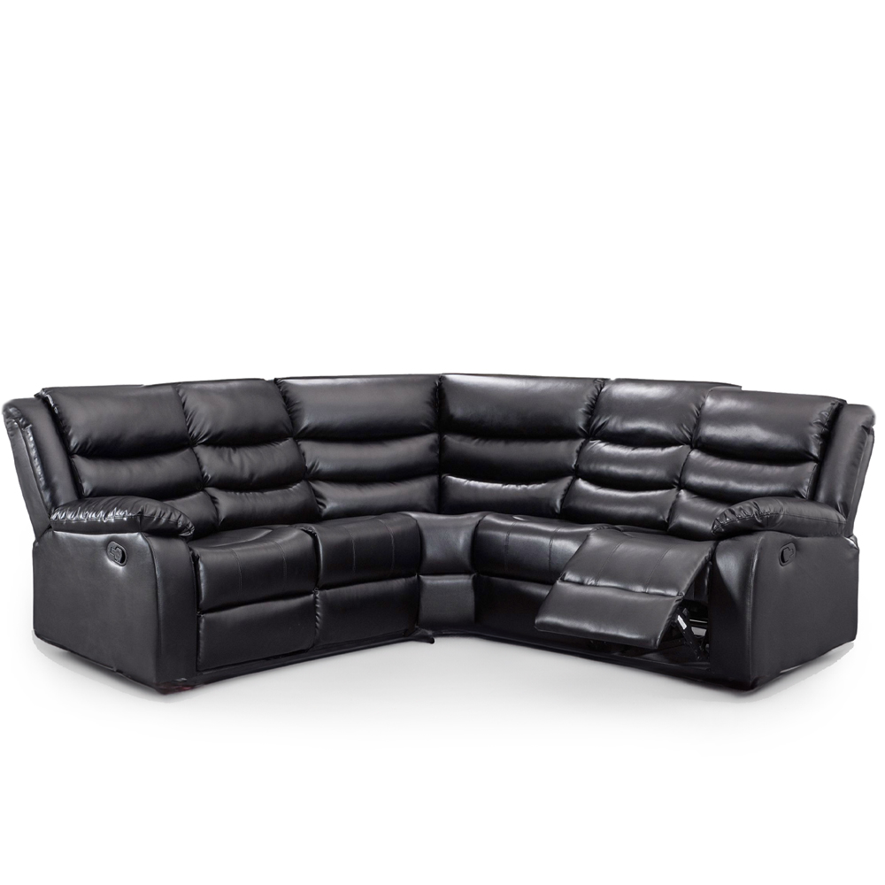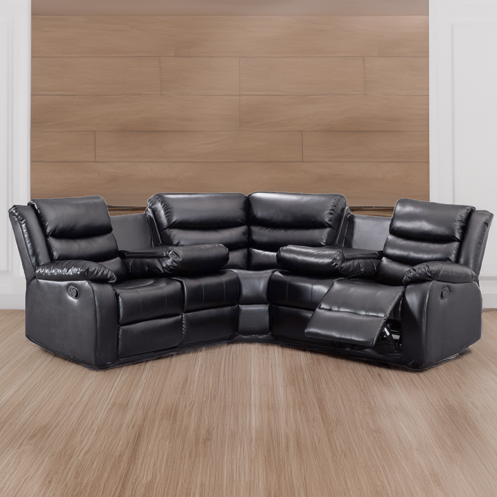 Portland Washington 5 Seater Black Lather L Shape Recliner Sofa with Drink Tray
