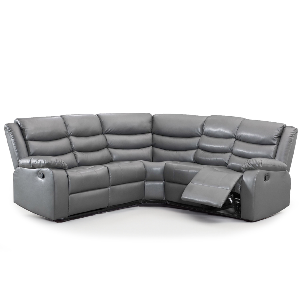Portland Washington 5 Seater Grey Leather L Shape Recliner Sofa with Drink Tray