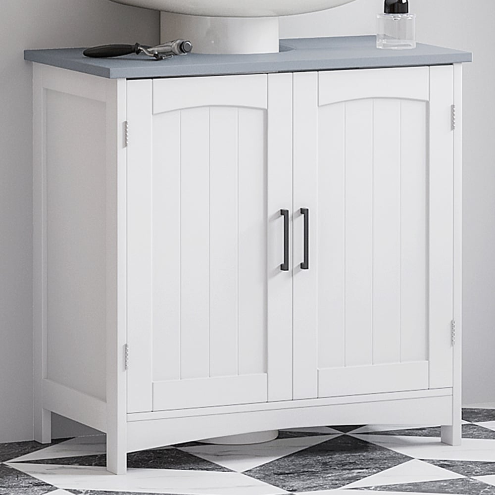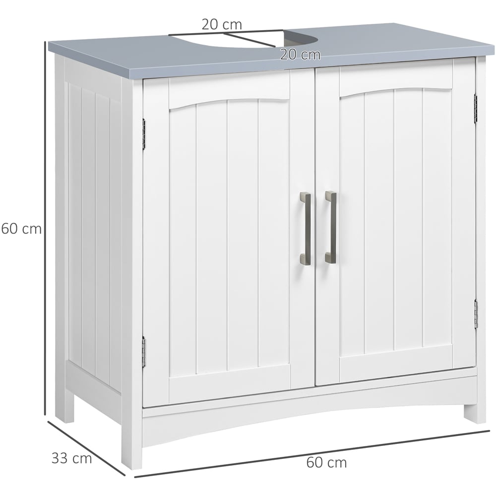 Keep your bathroom clutter free with the Portland White 2 Door Sink Cabinet. Designed to fit neatly under your sink, this cabinet comes with a simple and clean design that complements practically every home decor style. Crafted from premium MDF, it has a sturdy build that is water-resistant and easy to clean. The adjustable shelves can be customised to fit your storage needs.