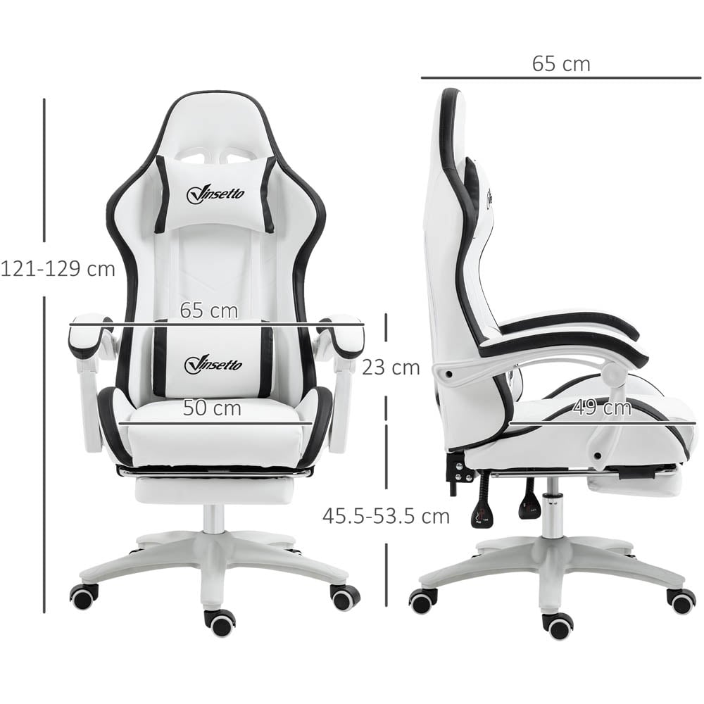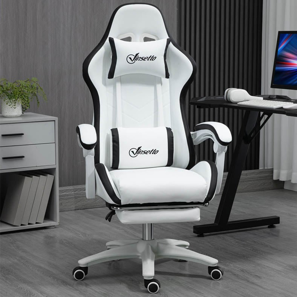 Discover the epitome of comfort with this Portland White and Black PU Leather Recliner Gaming Chair. Stylish and classy, this is a beautiful and impressive game chair. It brings character into your games room, home, office and beyond. With a 135° reclining back and footrest, you can lean back to a position you want and elevate the lower body separately. Super comfortable, the chair is padded and comes with lumber and head pillows to sit and game in comfort. Plus, the top and lower pillows provide additional support.