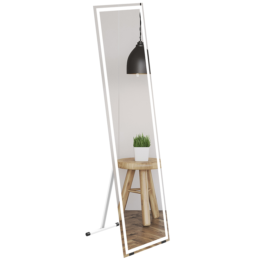 Walk out the door ready to go with the Portland White LED Standing Full Length Mirror 150 x 40cm 32W. Elevate your bathroom's style and functionality with this remarkable LED mirror that doubles as a stunning decor piece. The adjustable LED light surrounding the mirror's edge allows optimal lighting to make your daily routine a breeze. With a simple touch, you can easily switch between warm white, white, and natural white light to fit your mood. The mirror's user-friendly features allow you to control on/off, brightness, and colour with ease, and the memory function saves your settings for next time. Whether you choose to have it freestanding or fixed on the wall, the mirror includes a back leg and all the necessary accessories to make installation a breeze. Get ready to indulge in a spa-like experience every day with this luxurious LED mirror.