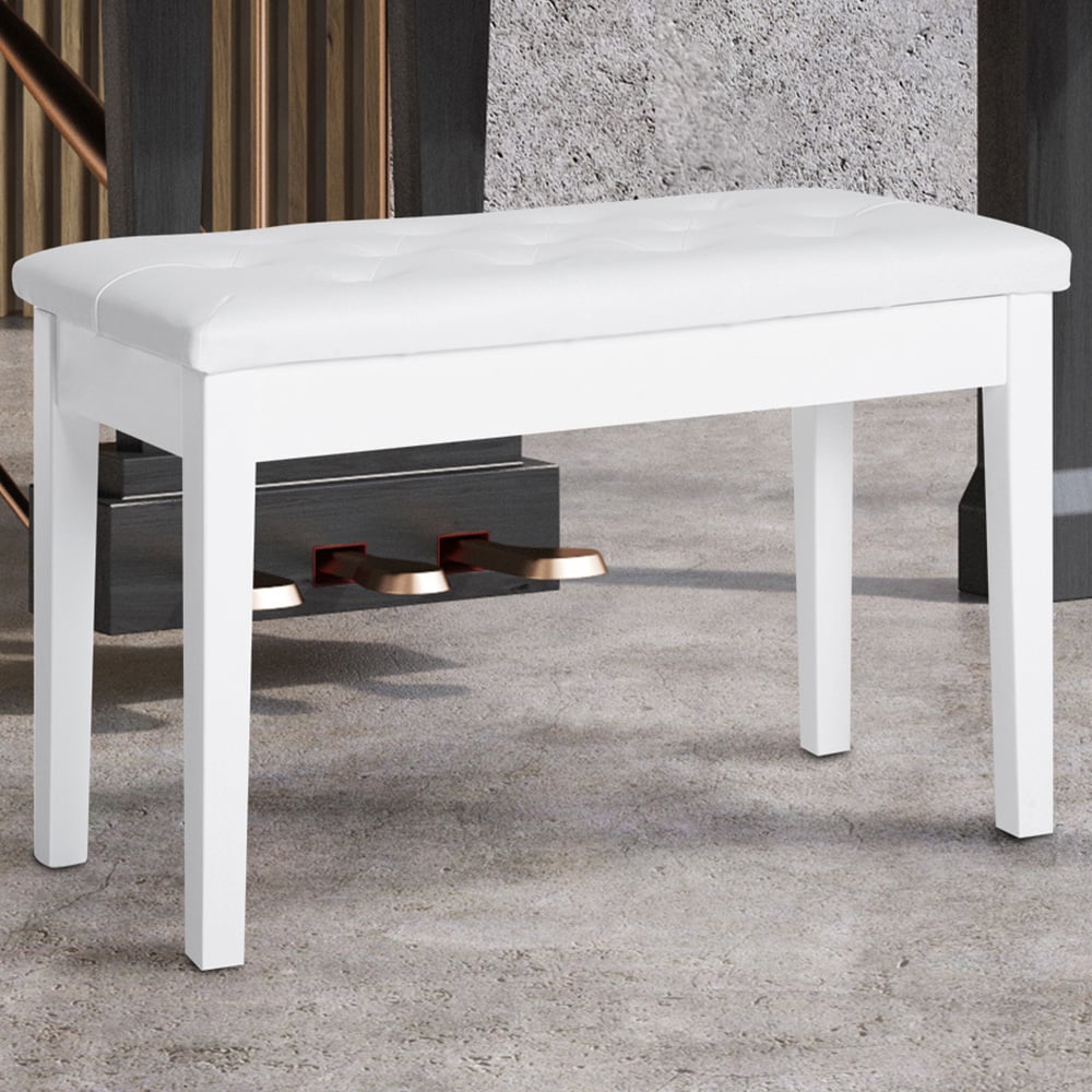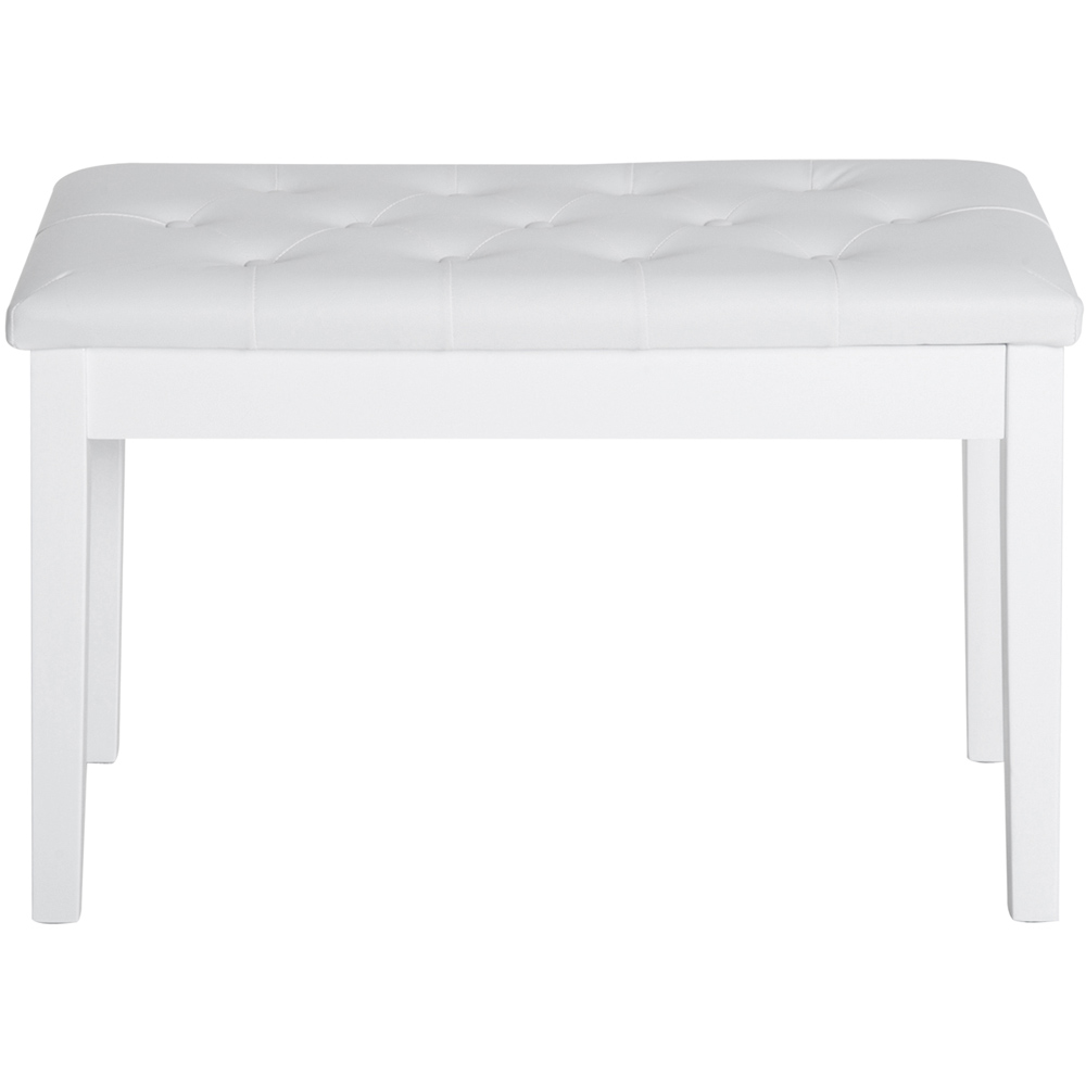 Redefine your space with the Portland White PU Leather Upholstered Piano Stool with Storage. It features a small storage compartment underneath the seat - enough room for sheet music and papers. A wooden frame for a strong structure, supporting you as you play. The two-seater size means you can practice with another player. Padded seat for comfort, wrapped in faux leather for a forever-stylish look. Size: 76x36x50cm