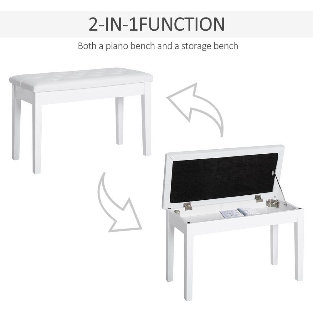 Portland White PU Leather Upholstered Piano Stool with Storage