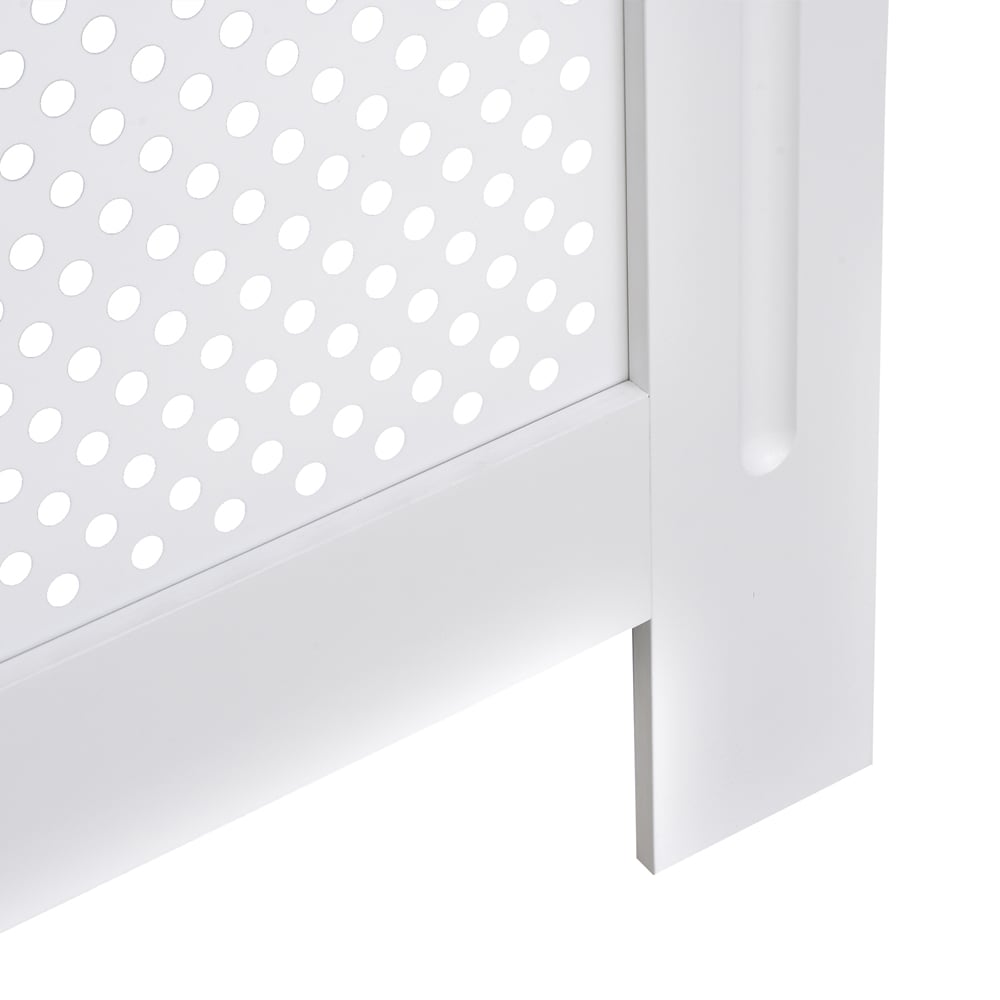 Elevate your home's aesthetic while discreetly masking your radiator with the Portland Radiator Cover Heating Cabinet. Crafted from solid MDF in a pristine white finish, this stylish cover not only complements any modern decor but also enhances functionality with its superior heat distribution. The round-shaped grill ensures effective heat flow and easy access to controls, making it both a practical and elegant solution for smaller spaces. Assembly is straightforward, and its lightweight design allows for effortless repositioning to suit your changing decor needs.