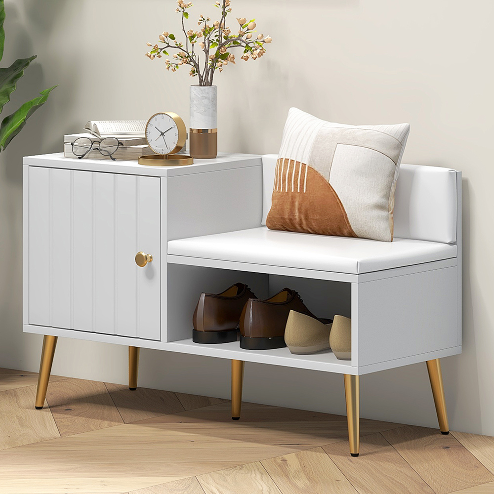 Decortie Filux 2 Shelf Single Door White Shoe Bench