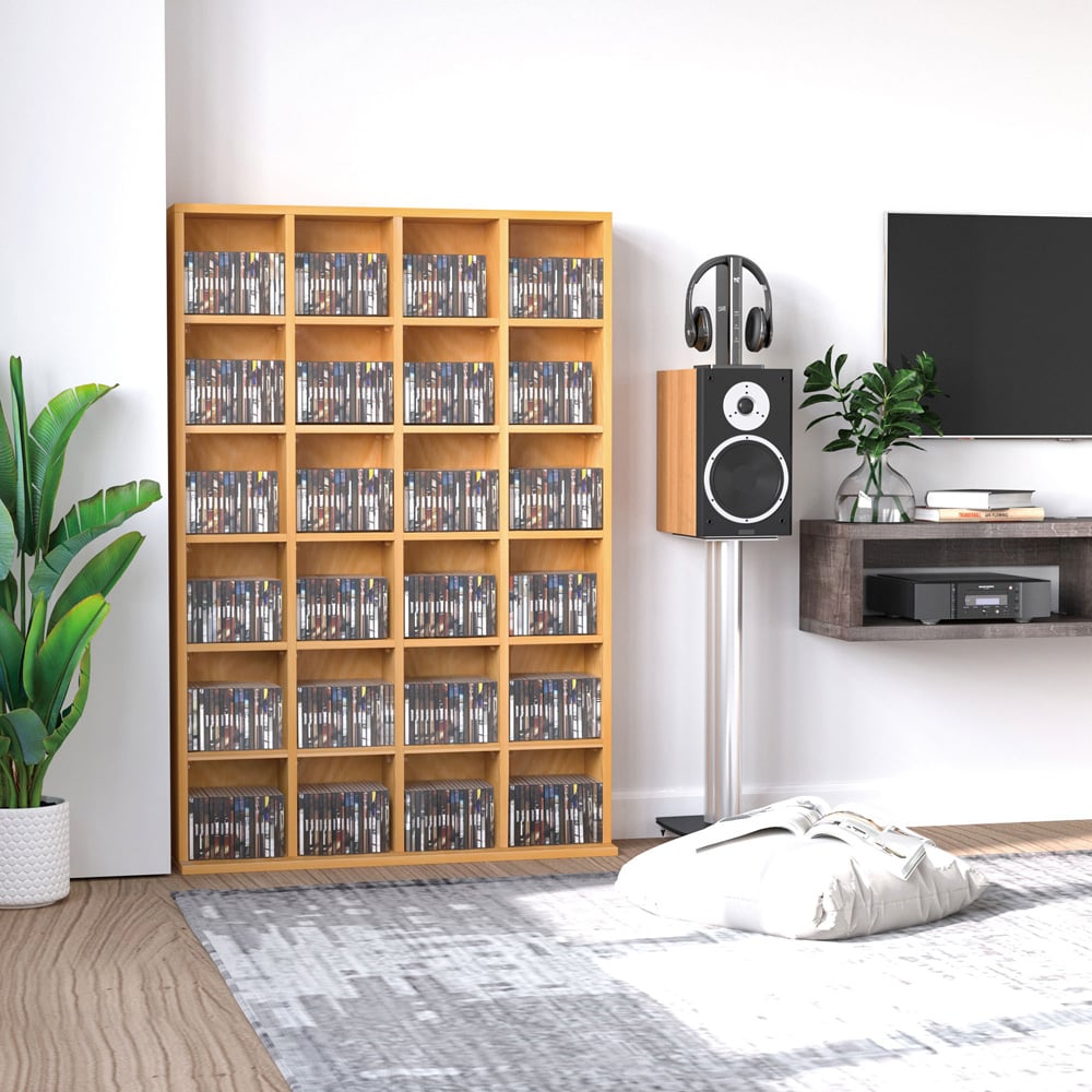 Organise your CDs, DVDs and more with the Portland Wooden CD and DVD Storage Shelf Unit. Featuring six tiers of storage space, this multi-functional media organiser is perfect for CDs, Blu-rays, video games, and other items. It offers ample storage for both home and office settings, creating a tidy and cohesive look wherever it is placed. The adjustable shelves can be moved up and down in three levels, allowing you to customise each compartment to your specific storage needs. Please note that the intermediate shelf is not adjustable. Crafted from quality particle board with a melamine coating, this unit is stable, easy to clean, and reliable for long-term use.