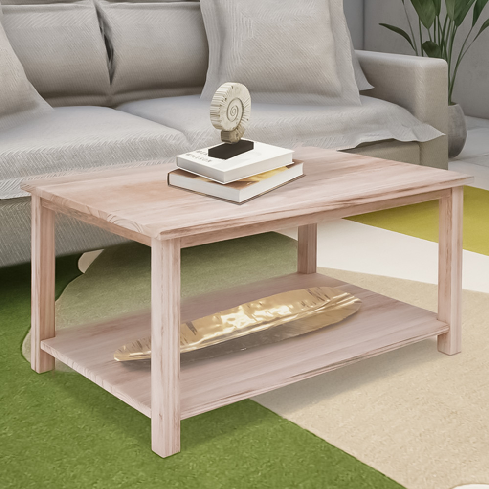 This Portofino Single Shelf Light Wood Coffee Table features a simple but pleasing design inspired by traditional Chinese cabinets. It is crafted by skilled craftsmen to the highest standards using responsibly sourced wood and veneers. It is made using a combination of solid Paulownia wood and ash veneer. The solid wood parts are brushed and finished on a clear lacquer to give them an aged look that will look great on any room set. This coffee table is perfect as a centrepiece for your room. The top has plenty of space for TV remotes, magazines, your tablet or your favourite scented candle. It is also perfect for drinks and snacks, but don’t forget to use a coaster to protect the finish. The shelf below allows space for those other items you need close to hand to be stored conveniently, perhaps tissues or your snuggle blanket for cold nights. These attributes, combined with a simple construction for easy assembly, make it a great product for any household.