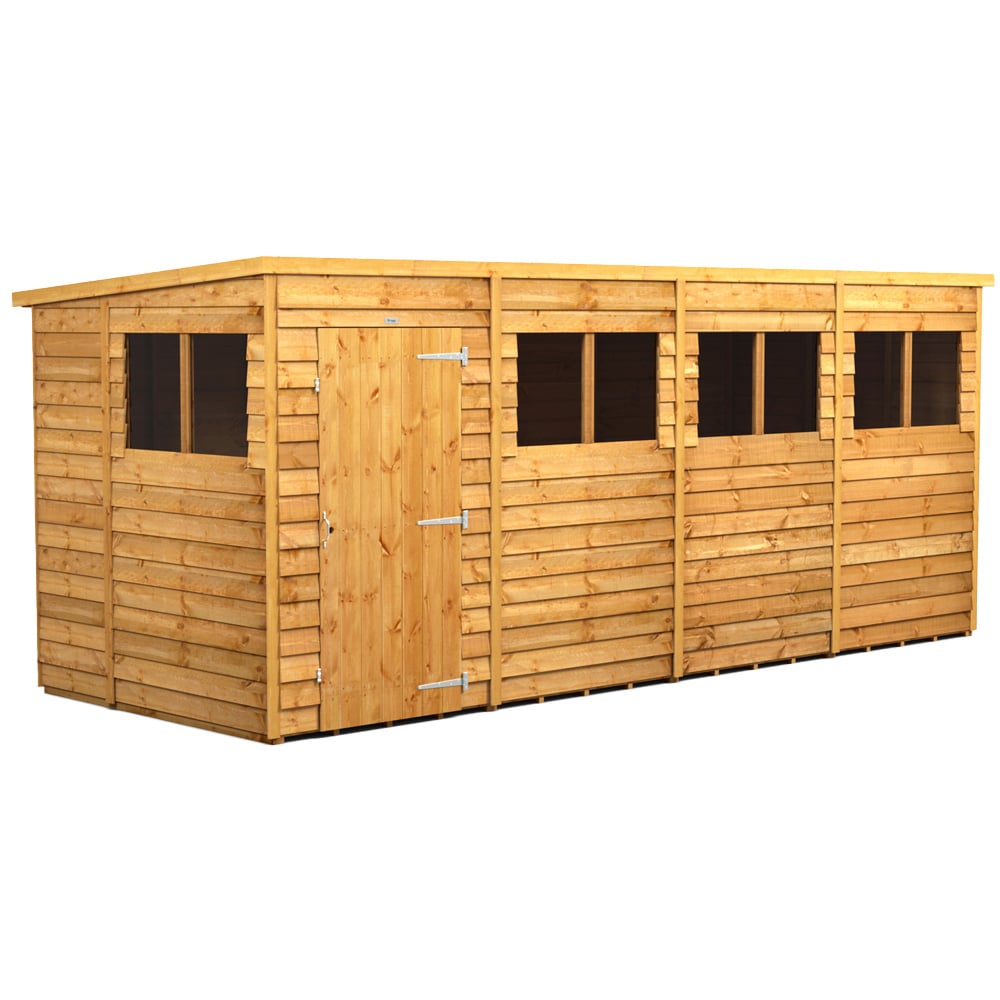 Designed for easy self-assembly, the Power 16 x 6ft Overlap Pent Garden Shed can be installed how you want by allowing you to place the door and windows in any position. The door can be placed in any position on any side, which you can choose as you're assembling the building. Modular design with rustic cladding, this is a premium-quality shed with high-grade timber. Each building is dip treated using a special formula wood preserver, with a wax additive allowing you to go a whole year without the need to re-treat your garden building. Each component is dip treated by submerging it into the treatment ensuring it is thoroughly coated before being removed and dried.