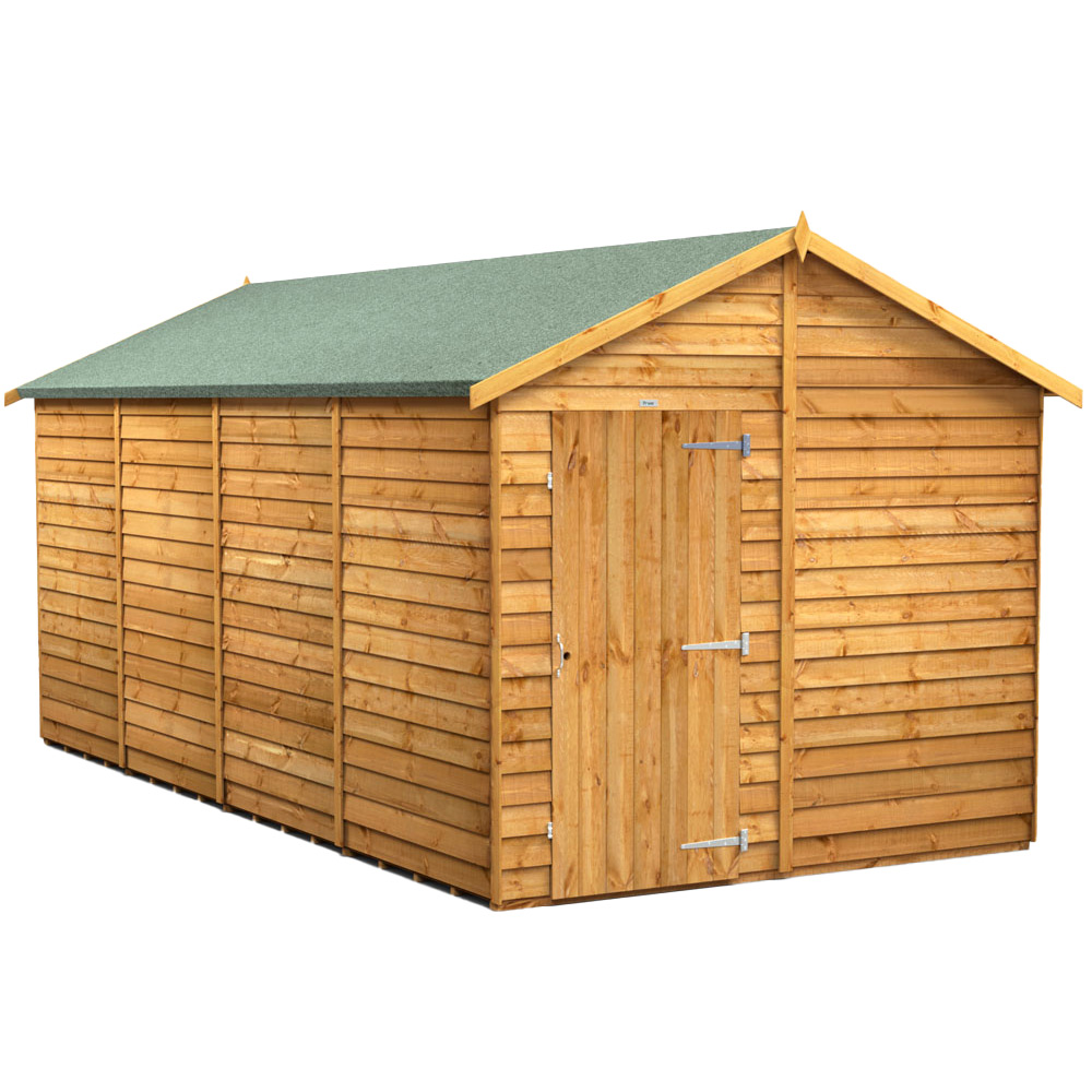 Designed for easy self-assembly, the Power 16 x 8ft Overlap Apex Windowless Garden Shed can be installed how you want by allowing you to place the door and windows in any position. The door can be placed in any position on any side, which you can choose as you're assembling the building. Modular design with rustic cladding, this is a premium-quality shed with high-grade timber. Each building is dip treated using a special formula wood preserver, with a wax additive allowing you to go a whole year without the need to re-treat your garden building. Each component is dip treated by submerging it into the treatment ensuring it is thoroughly coated before being removed and dried.