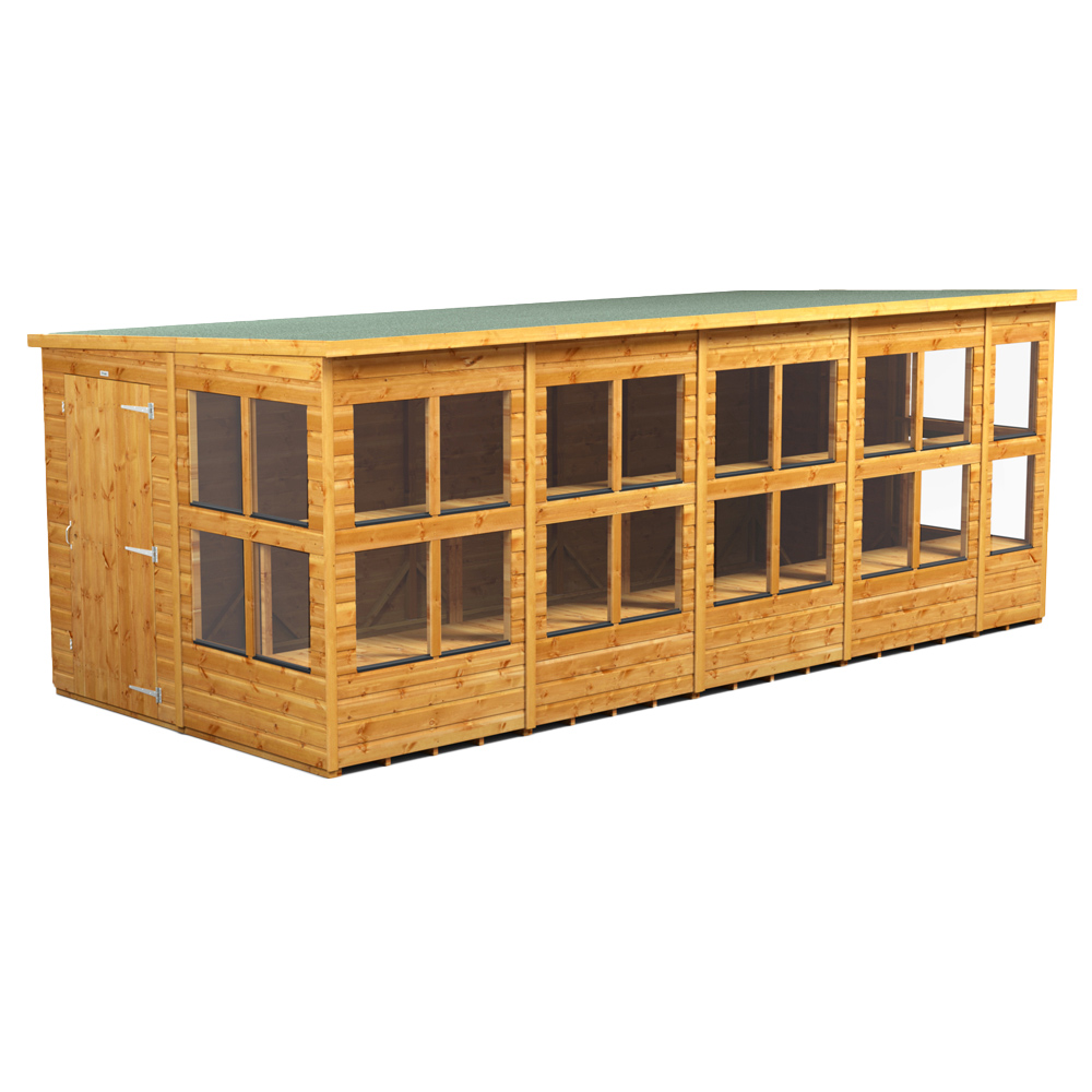 Designed for easy self-assembly, the Power 18 x 8ft Pent Potting Shed can be installed how you want by allowing you to place the door and windows in any position. The door can be placed in any position on any side, which you can choose as you're assembling the building. This is a premium-quality shed with high-grade timber. Each building is dip treated using a special formula wood preserver, with a wax additive allowing you to go a whole year without the need to re-treat your garden building. Each component is dip treated by submerging it into the treatment ensuring it is thoroughly coated before being removed and dried. Each potting shed also comes also comes with two-tiered staging units designed to fit perfectly against the framing of the building, providing valuable shelf space for tools, plants and more!