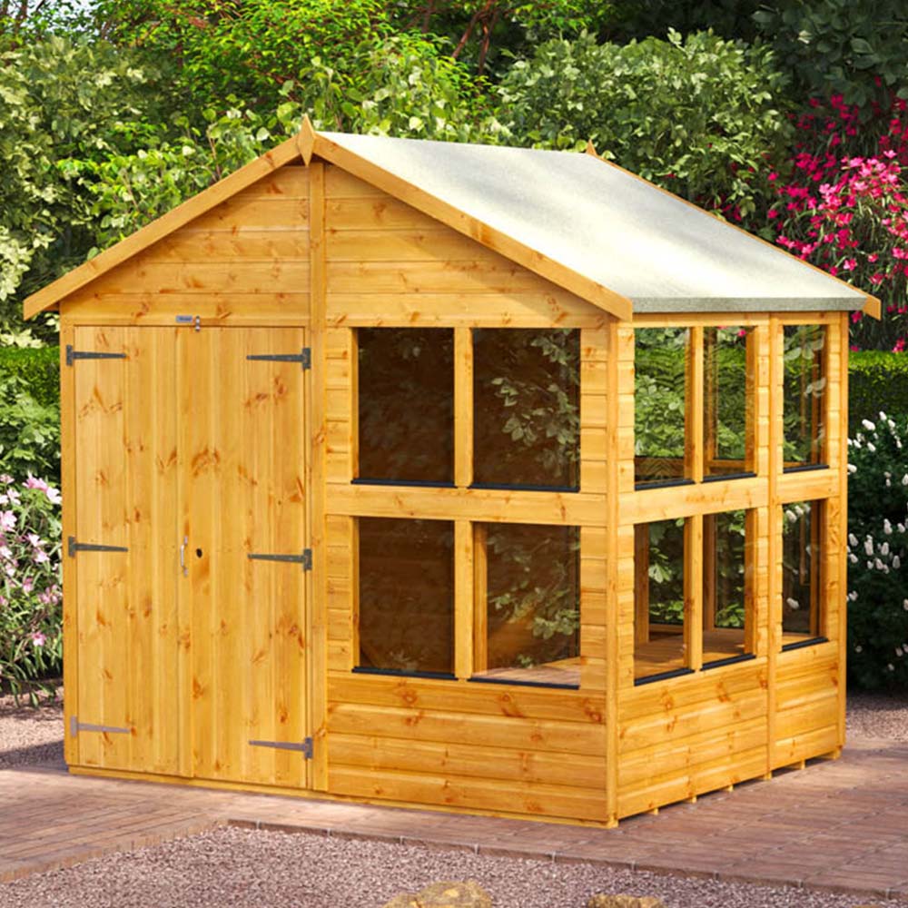 Designed for easy self-assembly, the Power 6 x 8ft Apex Potting Shed with Double Doors can be installed how you want by allowing you to place the door and windows in any position. The door can be placed in any position on any side, which you can choose as you're assembling the building. Featuring toughened glass security windows, this is a premium quality shed with high-grade timber sourced from the finest Scandinavian forests. Each building is dip treated using a special formula wood preserver, with a wax additive allowing you to go a whole year without the need to re-treat your garden building. Each component is dip treated by submerging it into the treatment ensuring it is thoroughly coated before being removed and dried. Finished with a five-pin security lock, the shed also comes with two-tiered staging units designed to fit perfectly against the framing of the building, providing valuable shelf space for tools, plants and more!