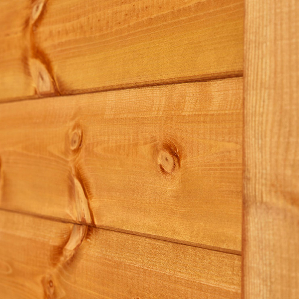 Designed for easy self-assembly, the 8 x 8ft Power Apex Potting Shed can be installed how you want by allowing you to place the door and windows in any position. The door can be placed in any position on any side, which you can choose as you're assembling the building. Featuring toughened glass windows, this is a premium quality shed with high-grade timber sourced from the finest Scandinavian forests. Each building is dip treated using a special formula wood preserver, with a wax additive allowing you to go a whole year without the need to re-treat your garden building. Each component is dip treated by submerging it into the treatment ensuring it is thoroughly coated before being removed and dried. Finished with a 5-pin cylinder lock for security, the shed also comes with two-tiered staging units designed to fit perfectly against the framing of the building, providing valuable shelf space for tools, plants and more!
