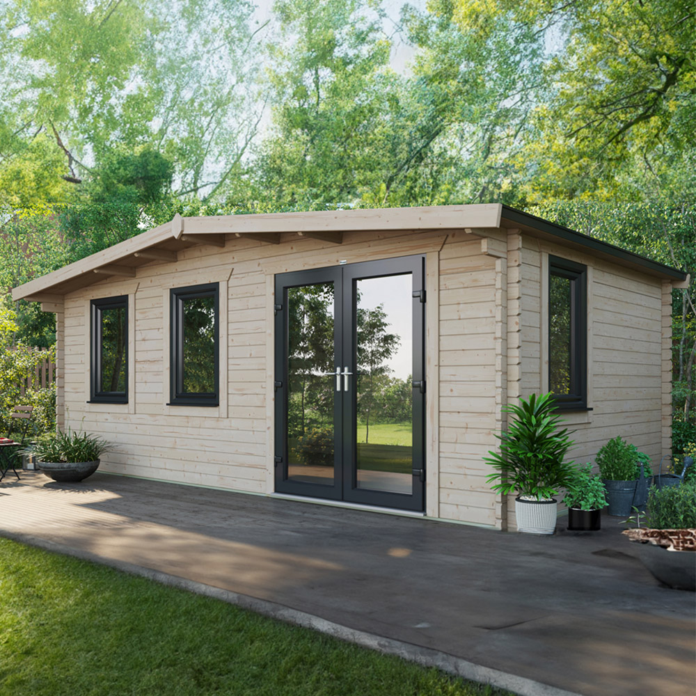 Make a practical and stylish addition to your outdoor space with the Power Sheds 12 x 20ft Right Door Chalet Log Cabin. It is built with 44mm thick high-grade timber walls, ensuring durability and strength. The cabin features uPVC double doors and 'Tilt and Turn' opening windows in anthracite grey, providing both security and insulation. The toughened double glazing and 5-point locking mechanism further enhance the safety of the cabin. The roof of the cabin has a 50-year life expectancy, thanks to the EPDM rubber roofing system and gutter edge drip plate that ensures long-lasting protection against the elements. Additionally, the cabin is designed to be under 2.5m in height, allowing it to bypass most planning permission restrictions. It features 'easy access' aluminium low threshold sills on the doors, making it convenient for entry and exit. The Burford-style skirting adds a touch of elegance to the cabin's design. Furthermore, the cabin is designed for easy self-assembly, making it easily accessible.