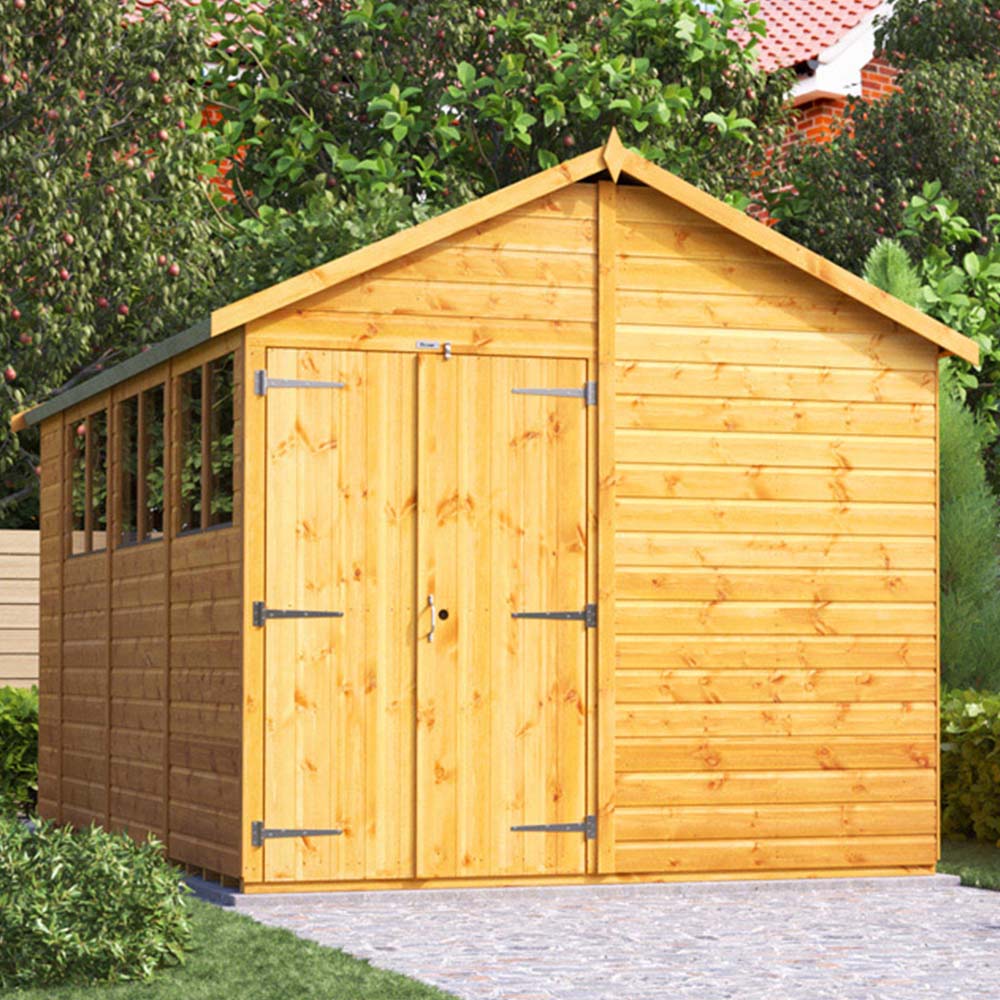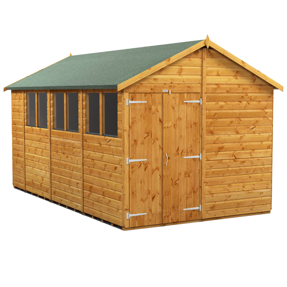 Designed for easy self-assembly, the Power 14 x 8ft Apex Garden Shed with double doors can be installed how you want by allowing you to place the door and windows in any position. Being modular, the door can be placed in any position on any side, which you can choose as you're assembling the building. Plus, this premium quality shed is made with high-grade timber sourced from the finest Scandinavian forests, which makes it durable and lasting. Each building is dip treated using our special formula wood preserver, with a wax additive allowing you to go a whole year without the need to re-treat your garden building. Every component is dip treated by submerging it into the treatment ensuring it is thoroughly coated before being removed and dried.