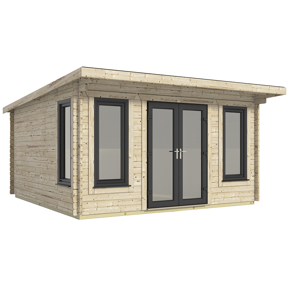 Make a practical and stylish addition to your outdoor space with the Power Sheds 16 x 16ft Centre Door Pent Log Cabin. It is built with 44mm thick high-grade timber walls, ensuring durability and strength. The cabin features uPVC double doors and 'Tilt and Turn' opening windows in anthracite grey, providing both security and insulation. The toughened double glazing and 5-point locking mechanism further enhance the safety of the cabin. The roof of the cabin has a 50-year life expectancy, thanks to the EPDM rubber roofing system and gutter edge drip plate that ensures long-lasting protection against the elements. Additionally, the cabin is designed to be under 2.5m in height, allowing it to bypass most planning permission restrictions. It features 'easy access' aluminium low threshold sills on the doors, making it convenient for entry and exit. The Burford-style skirting adds a touch of elegance to the cabin's design. Furthermore, the cabin is designed for easy self-assembly, making it easily accessible.