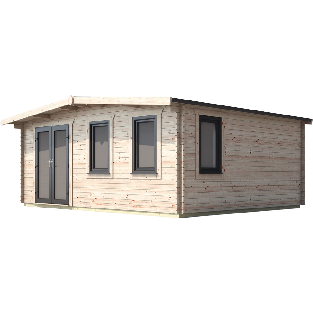 Make a practical and stylish addition to your outdoor space with the Power Sheds 16 x 18ft Left Door Chalet Log Cabin. It is built with 44mm thick high-grade timber walls, ensuring durability and strength. The cabin features uPVC double doors and 'Tilt and Turn' opening windows in anthracite grey, providing both security and insulation. The toughened double glazing and 5-point locking mechanism further enhance the safety of the cabin. The roof of the cabin has a 50-year life expectancy, thanks to the EPDM rubber roofing system and gutter edge drip plate that ensures long-lasting protection against the elements. Additionally, the cabin is designed to be under 2.5m in height, allowing it to bypass most planning permission restrictions. It features 'easy access' aluminium low threshold sills on the doors, making it convenient for entry and exit. The Burford-style skirting adds a touch of elegance to the cabin's design. Furthermore, the cabin is designed for easy self-assembly, making it easily accessible.