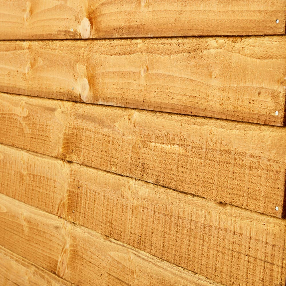 Designed for easy self-assembly, the Power 16 x 4ft Overlap Apex Garden Shed can be installed how you want by allowing you to place the door and windows in any position. The door can be placed in any position on any side, which you can choose as you're assembling the building. Modular design with rustic cladding, this is a premium-quality shed with high-grade timber. Each building is dip treated using a special formula wood preserver, with a wax additive allowing you to go a whole year without the need to re-treat your garden building. Each component is dip treated by submerging it into the treatment ensuring it is thoroughly coated before being removed and dried.