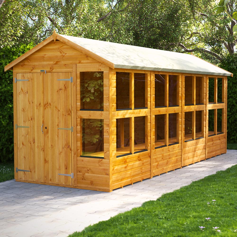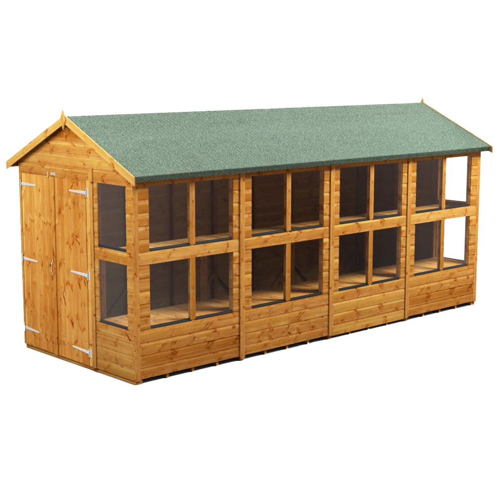 Designed for easy self-assembly, the Power 16 x 6ft Apex Potting Shed with Double Doors can be installed how you want by allowing you to place the door and windows in any position. Being modular, the door can be placed in any position on any side, which you can choose as you're assembling the building. Plus, this premium quality shed is made with high-grade timber sourced from the finest Scandinavian forests, which makes it durable and lasting. Each building is dip treated using our special formula wood preserver, with a wax additive allowing you to go a whole year without the need to re-treat your garden building. Every component is dip treated by submerging it into the treatment ensuring it is thoroughly coated before being removed and dried.